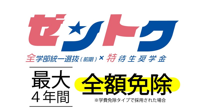 総合型・学校推薦型選抜で合格した方も、全学部統一選抜(前期)に同一学科で出願することで特待生奨学金に挑戦可能です!