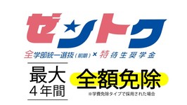 入学金+4年間の授業料が原則全額免除、または入学手続時に授業料を20万円減免する奨学金制度!